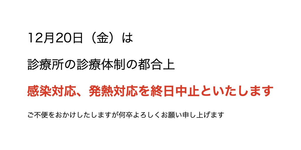 12月20日は診療所の診療体制上発熱外来中止となるため