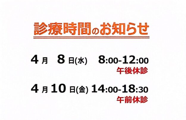 診療体制のご案内<4月8日、10日及びゴールデンウィーク>