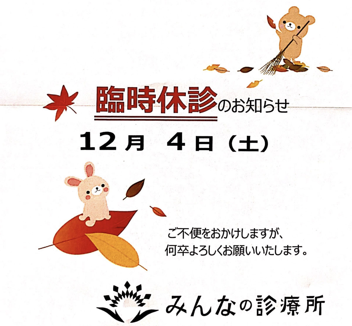 ※所長の事情等で不定期に臨時休診します